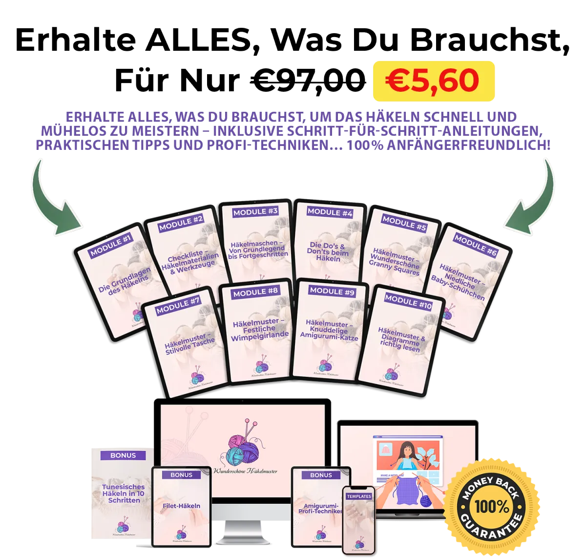 Hier ist die weltweit beste Garantie für das Wunderschöne Häkelmuster-Bundle.